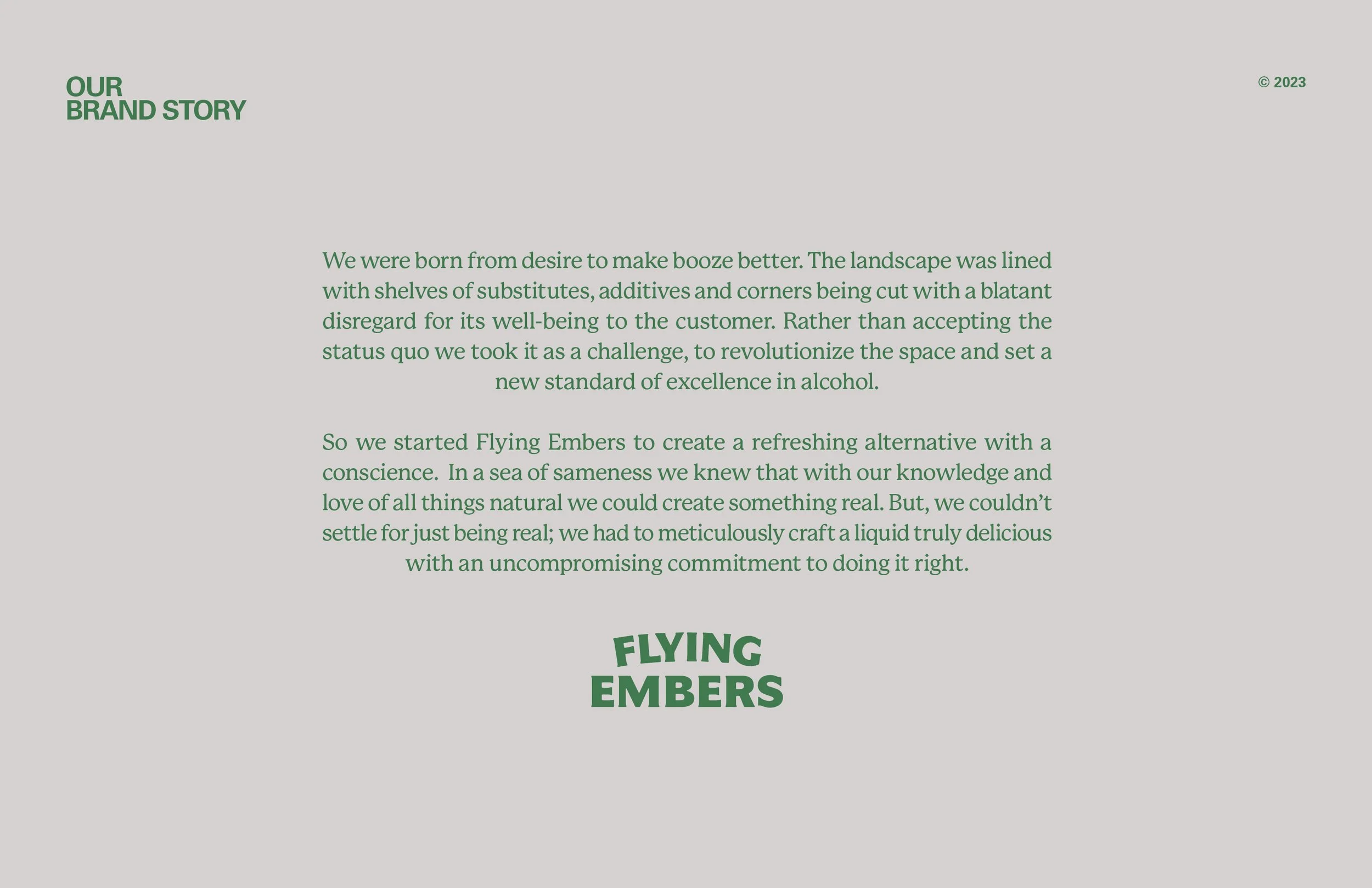 In addition to creating a unified and relevant brand perspective, Flying Embers also needed to raise awareness and build brand affinity. This required a strategic approach to marketing and communication that would resonate with their target audience and highlight the unique attributes of their products. With the comprehensive overhaul of their previous brand voice, messaging, art direction, photography, packaging, marketing strategy, and collaborations with content creators and influencers, Flying Embers was able to create a strong and cohesive brand identity that attracted and engaged their audience while building brand affinity.