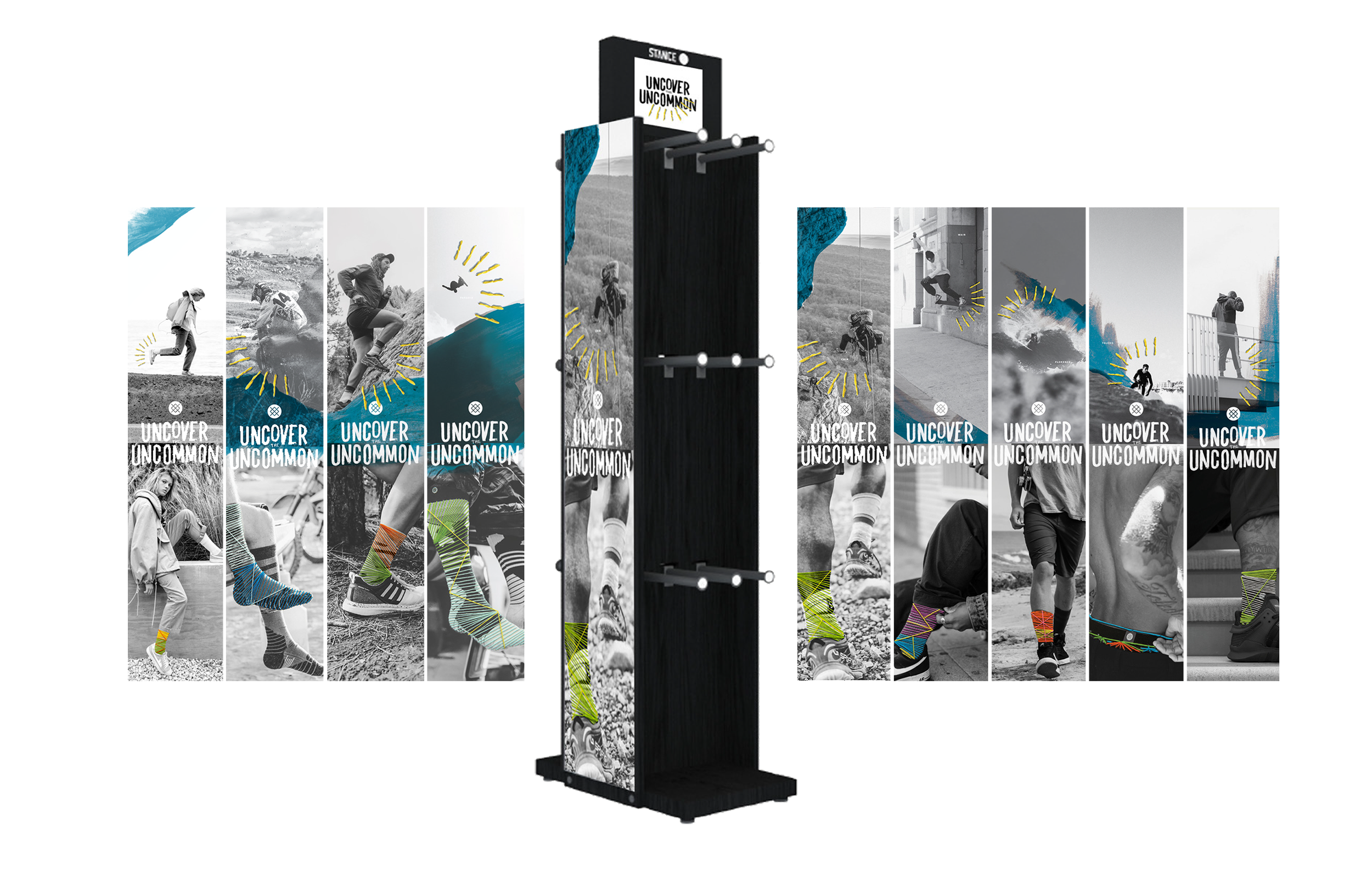 Uncover the Uncommon was a rally cry and north star that Stance needed to unite its diverse pool of athletes across multiple disciplines. Up until this point, segmentation had created a splintered POV that asked more questions than it answered. Juxtaposing the unique characteristics of our athletes with hand-sewn graphics created an aesthetic that is both self-expressive and unique to only Stance. We incorporated the talents of our brand's top ambassadors, including James Harden, Jose Altuve, Bubba Watson, John John Florence, Ishod Wair, and Nora Vasconcellos, across our men's and women's sock collections, as well as our underwear, intimates, and apparel line.